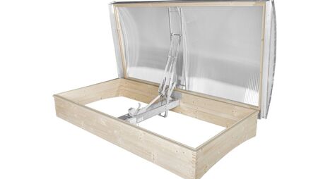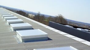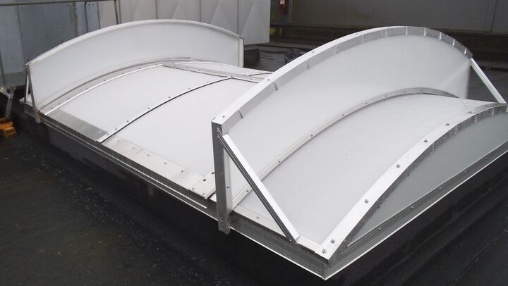 Brandventilation i henhold til den europæiske standard EN 12101-2 udføres som CE-mærkede brandventilatorer som polycarbonatovenlys i hvælvet med indbygget dobbeltklappe - alle i 90° åbning.